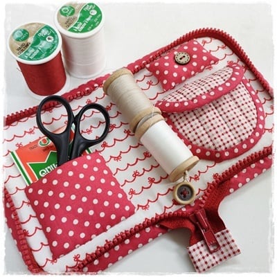 必要なものを最低限だけ入れて持ち歩ける小さなソーイングケースです。